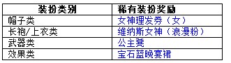令他一见倾心的秘诀就是打扮得漂漂亮亮的,掌控爱情的女神维纳斯可以改变你的恋爱运势哦。活动期间,女性玩家(帐号性别为女)在游戏商城的搭配栏使用点券购买指定类别的装扮,将有50%机率获得稀有装扮道具一个。